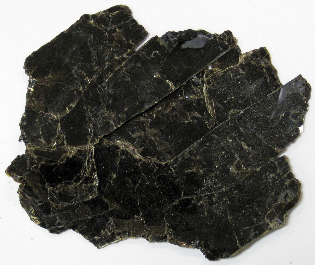 Black-brown in color 1 perfect cleavage H: 2.5-3 G: 2.7-3.1 L: Vitreous Thin plates are elastic S: white |